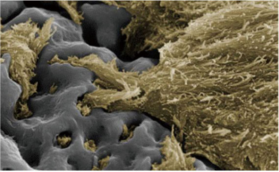 ▲种植体和牙骨之间产生骨结合